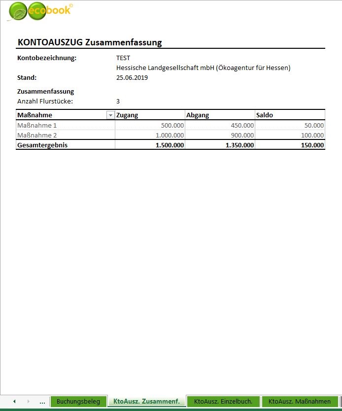 Hier sehen Sie alle Informationen, welche auf Seite 1 des Kontoauszugs angezeigt werden, also der Kontoauszug Zusammenfassung.